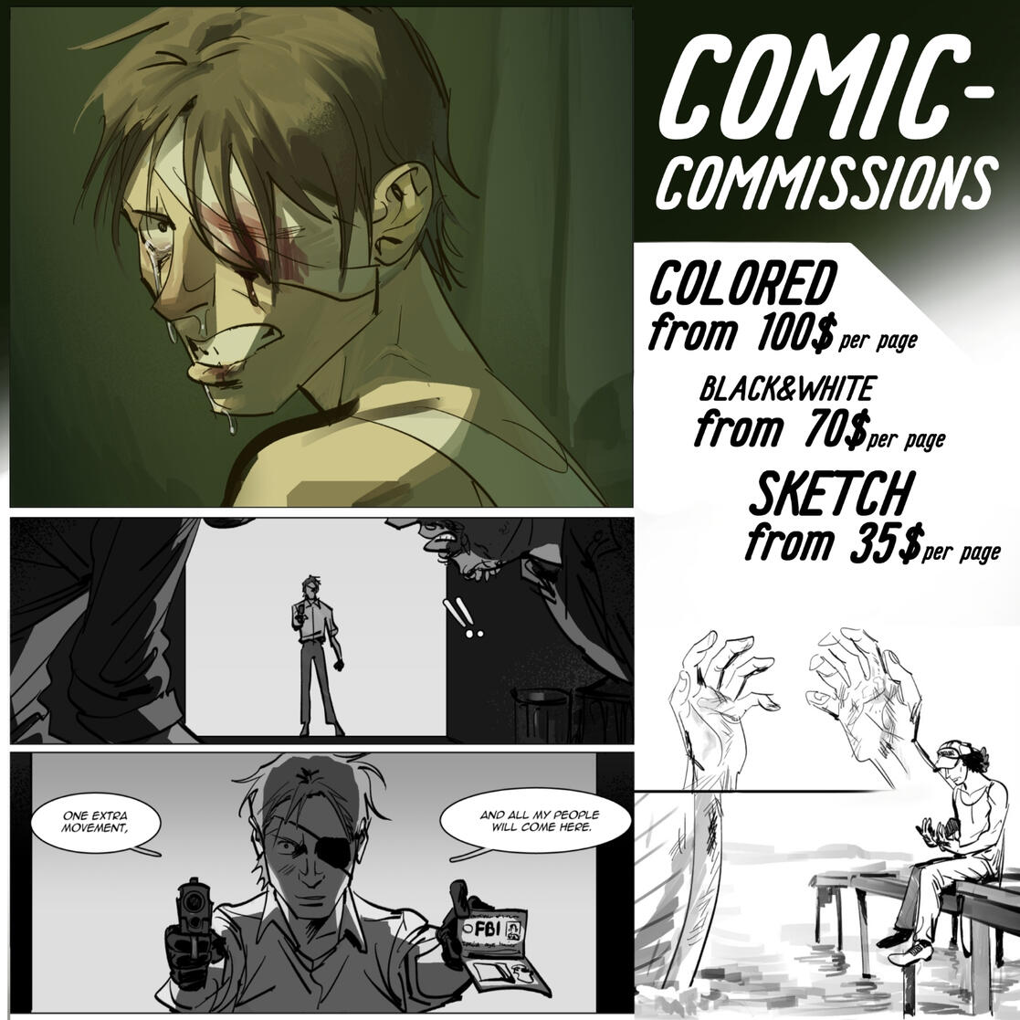 Next, I will provide a picture with all the prices for drawings, comics as well as examples. Information about deadlines, what I draw, and the rest will be at the end.