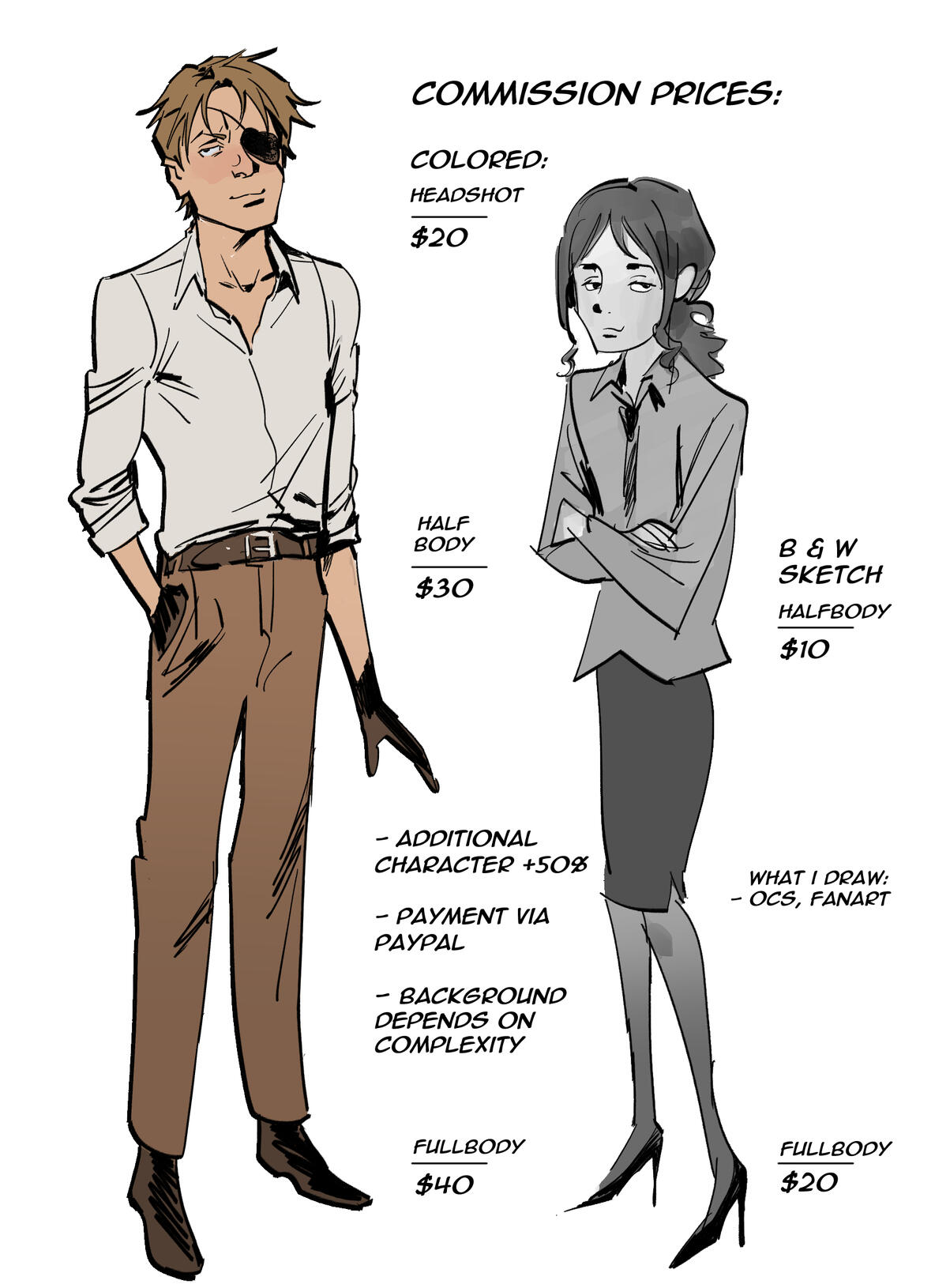 Next, I will provide a picture with all the prices for drawings, comics as well as examples. Information about deadlines, what I draw, and the rest will be at the end.